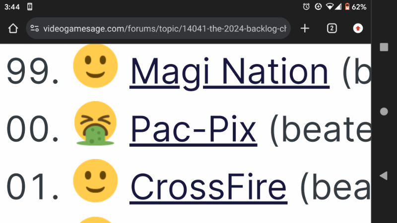 the_wizard_666 | 1,325 Posted January 31 Share Posted January 31 My goal of getting a first-time completion of at least one NES game per day in January has now been achieved. Additionally, I used a game from my Backlog Challenge list to do it...Godzilla 2 is now in the bag! I actually started it on the 29th, after beating Roundball, but as I was running out of time on the 30th, I cashed in my one remaining (known) gimmie victory by knocking off Ski or Die (just need to finish each event with a score, just like Skate or Die before it). I then kept working on beating more Godzilla 2 scenarios, just finishing around 20 minutes or so ago. The last few scenarios were dicey for sure, though the final one was almost a relief. The 11th scenario was the worst...a shit map, combined with very limited units, made for a rough ride...especially when I made an early screwup and had to adapt on the fly. Still, I eked out the win, moving on to the final one, where you have to fight every enemy aside from Mothra. It sure wasn't easy, but it was cake compared to the one I'd just knocked off. Overall, I'd say Godzilla 2 is a solid 8/10. It's simple enough to pick up and play, but had far more depth to it than Desert Commander, along with more varied scenarios. Though the RNG would have me getting pissed off occasionally, it was never bad enough where I'd get frustrated. Overall, I'd recommend it as a starting point for anyone interested in strategy games, as it's just complex enough to be fun, but nowhere near as in depth as even the simplest of Koei games. Speaking of strategy games, Godzilla 2 was the final strategy game I hadn't beaten, so I've now completed the entire genre! Anyway, barring me shooting for an extra game or two later on, here's my list for January 2024: Spoiler US 272. Wayne Gretzky Hockey (January 1, 2024) US 273. Hollywood Squares (January 2, 2024) US 274. California Games (January 3, 2024) US 275. The Magic of Scheherazade (January 4, 2024) US 276. Talking Super Jeopardy (January 5, 2024) US 277. Magic Darts (January 5, 2024) US 278. Magic Johnson's Fast Break (January 6, 2024) US 279. The Three Stooges (Best Ending, January 7, 2024) US 280. Moon Ranger (January 8, 2024) US 281. Caveman Games (January 9, 2024) US 282. The Karate Kid (January 10, 2024) US 283. Blades of Steel (January 11, 2024) US 284. Puzzle (January 12, 2024) US 285. Winter Games (January 13, 2024) US 286. Mappyland (January 14, 2024) US 287. Joe & Mac (January 15, 2024) US 288. Digger T. Rock (No-Death Run With Warps, January 16, 2024) US 289. WWF Wrestlemania Steel Cage Challenge (Both belts, January 17, 2024) US 290. Wayne's World (January 18, 2024) US 291. Snoopy's Silly Sports Spectacular (Bronze Medal, January 19, 2024) US 292. Attack of the Killer Tomatoes (January 20, 2024) US 293. Astyanax (January 21, 2024) US 294. Kid Klown in Night Mayor World (First Quest, January 22, 2024) US 295. Skate or Die (January 23, 2024) US 296. The Rocketeer (January 24, 2024) US 297. Totally Rad (January 25, 2024) US 298. Tennis (Singles, Difficulty 1, January 26,2024) US 299. Volleyball (January 27, 2024) US 300. Desert Commander (All scenarios beaten, January 28, 2024) US 301. Roundball: 2 on 2 Challenge (January 29, 2024) US 302. Ski or Die (January 30, 2024) US 303. Godzilla 2 (All scenarios beaten, January 31, 2024) *NOTE* The numbers are which entry number each game is on my list. I didn't do any, but I have separate categories on my list for PAL, Famicom, unreleased games, and homebrew games, and have a running total at the bottom showing my overall completions (all categories combined). I'm now at 343 games, so hitting 350 this year is highly likely. But I may take an NES break soon enough...beating 32 games for the first time in a month (plus a bunch of other completions I did for the NES Completions thread that were NOT first time completions, thus not being eligible for this list) has me thinking it's time for a break Also, since all the NES games I've had on my list this year were also on my list from last year, that puts me at 5 completions from last year's list (added to the 3 I did last year, that makes 8/40, or 20% completion). I'm debating continuing to track that or not, since although I made the list in 2022, I didn't actually work on a game until mid November, so it could still be interesting to see what I get done off that list down the line. That said, I think it may take away from me focusing on games from this year's list. Anyway, I suppose now I can focus on knocking off the rest of Oblivion, and maybe getting back to Wizardry V as well, as that's fallen by the wayside while I kept my streak going. To think, I was gonna stop at two weeks 6 Link to comment Share on other sites More sharing options...